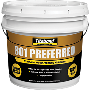 Titebond 801 Preferred may be used for above-, on- and below-grade applications and on all substrates listed in this specification guide. All applications are susceptible to moisture and should be tested for moisture prior to installation in several locations within the installation area.