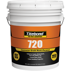 Titebond<sup>®</sup> 720 is an environmentally superior, latex flooring adhesive with fast tack. It may be used with conventional carpets and resilient sheet goods over standard construction surfaces. This product’s formulation is designed for floor coverings that require frequent tear out and replacement. This product has lower...