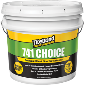 Titebond 741 Choice is a proprietary, polymer-based wood flooring adhesive. This product provides a tough, flexible, and tenacious bond to a variety of substrates. Developed to significantly decrease the occurrence of popping spots in wood floors, it is easy to trowel and allows for easy cleanup on prefinished floors. Its elastomeri...